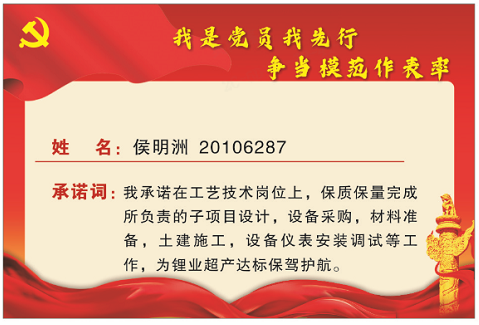 近日,華友廣西園區(qū)開(kāi)展“亮身份、亮職責(zé)、亮承諾”主題活動(dòng),通過(guò)統(tǒng)一制作黨員身份桌牌,引導(dǎo)黨員時(shí)刻銘記身份、履行職責(zé),進(jìn)一步強(qiáng)化黨員意識(shí),發(fā)揮先鋒模范作用,在各個(gè)支部?jī)?nèi)形成黨旗飄起來(lái)、黨徽戴起來(lái)、黨員干起來(lái)的濃厚氛圍。