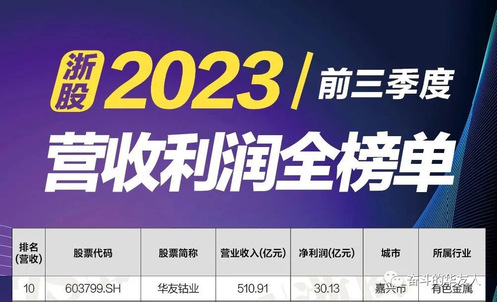 11月1日,浙商雜志公布浙江A股上市公司2023年前三季度營收、利潤全榜單,共有691家公司上榜。華友鈷業(yè)以510.91億元的營收、30.13億元的凈利潤雙雙位居第十,交上了一份高水平開放引領(lǐng)高質(zhì)量發(fā)展的高分答卷!