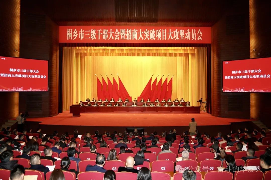 人勤春早功不負(fù),奮斗實(shí)干啟新程。今天(2月17日),桐鄉(xiāng)市召開(kāi)三級(jí)干部大會(huì)暨招商大突破項(xiàng)目大攻堅(jiān)動(dòng)員會(huì),總結(jié)成績(jī)、表彰先進(jìn)、樹(shù)立典型、提神鼓勁,動(dòng)員全市上下擼起袖子加油干,重整行裝再出發(fā),奮力書(shū)寫(xiě)中國(guó)式現(xiàn)代化的桐鄉(xiāng)篇章,加快建設(shè)數(shù)字文明共富美好新桐鄉(xiāng)。中共桐鄉(xiāng)市委書(shū)記于會(huì)游,桐鄉(xiāng)市委副書(shū)記、市長(zhǎng)王堅(jiān)等四套班子領(lǐng)導(dǎo)出席大會(huì)。集團(tuán)董事長(zhǎng)陳雪華參加會(huì)議并于主席臺(tái)就座。