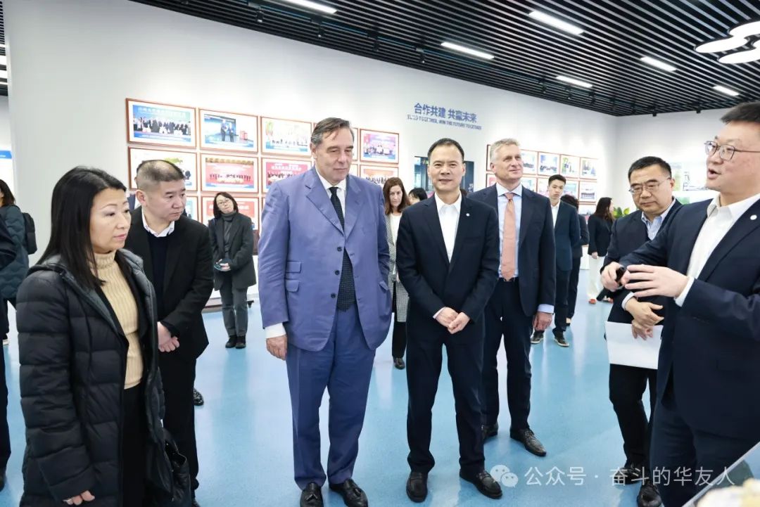 雙方圍繞新能源汽車電池產(chǎn)業(yè)鏈發(fā)展深入交流。陳紅良總裁代表公司介紹了打造開放華友、綠色華友、科技華友的戰(zhàn)略和布局。座談交流前,陳總陪同普利蒂副總裁一行參觀了總部展廳,對公司的發(fā)展歷程、產(chǎn)業(yè)布局、產(chǎn)品應用、項目建設(shè)、戰(zhàn)略規(guī)劃等進行了介紹。