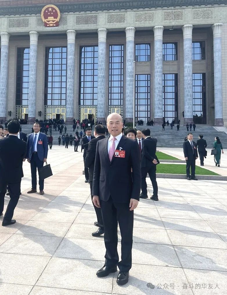 ▲全國人大代表、華友鈷業(yè)董事長陳雪華履職參會。圖為陳雪華董事長在人民大會堂前。