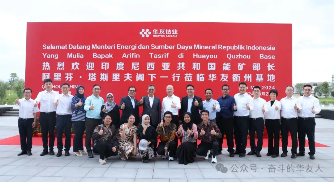 5月25-26日,印尼能礦部長(zhǎng)阿里芬·塔斯里夫(Arifin Tasrif)閣下訪問(wèn)中國(guó),考察調(diào)研華友衢州基地,華友集團(tuán)董事長(zhǎng)陳雪華熱情接待。