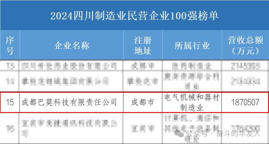 2024四川制造業(yè)民營企業(yè)100強榜單
