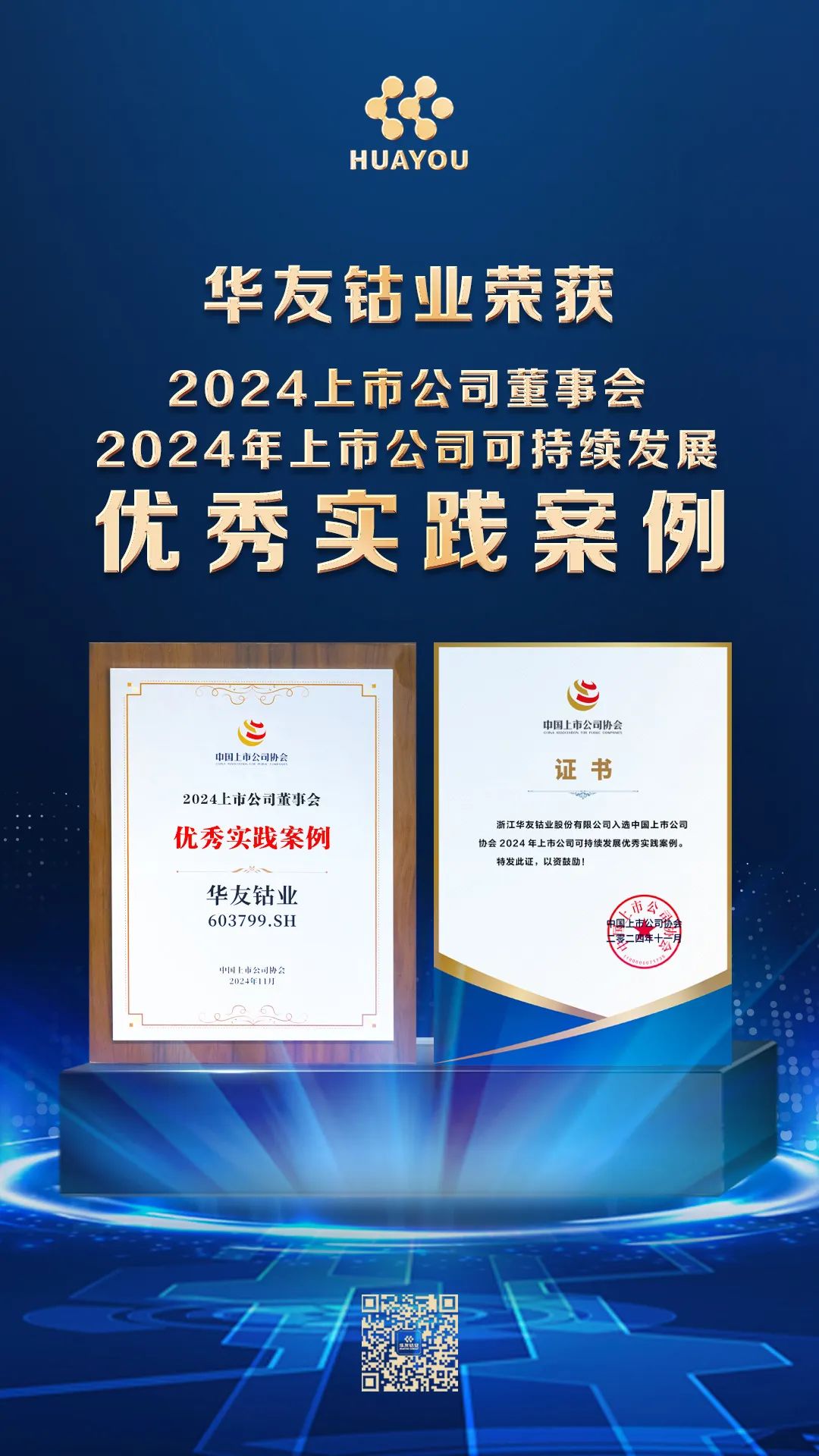 11月22日,中國上市公司協(xié)會第三屆理事會第五次會議及2024上市公司可持續(xù)發(fā)展大會在京召開,會議期間分別舉辦了2024董事會最佳實(shí)踐案例及2024上市公司可持續(xù)發(fā)展最佳實(shí)踐案例發(fā)布儀式。華友鈷業(yè)成功入選“2024年上市公司董事會優(yōu)秀實(shí)踐案例”和“2024年上市公司可持續(xù)發(fā)展優(yōu)秀實(shí)踐案例”,體現(xiàn)了中國上市公司協(xié)會、資本市場對公司董事會履職能力與可持續(xù)發(fā)展實(shí)踐能力的高度認(rèn)可。