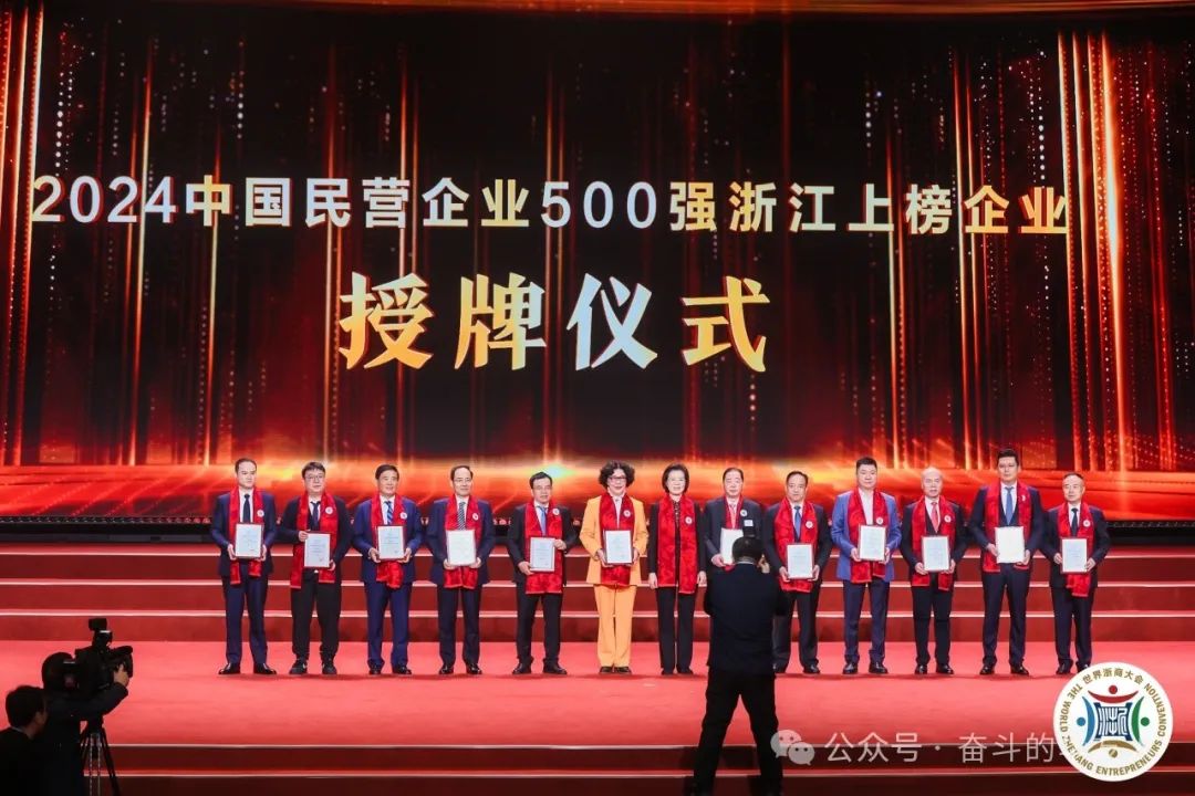 今天(11月28日),第七屆世界浙商大會在浙江省人民大會堂開幕,大會為2024中國民營qm球盟會·(中國)球盟會500強浙江上榜qm球盟會·(中國)球盟會代表授牌,集團董事長陳雪華登臺領(lǐng)獎。