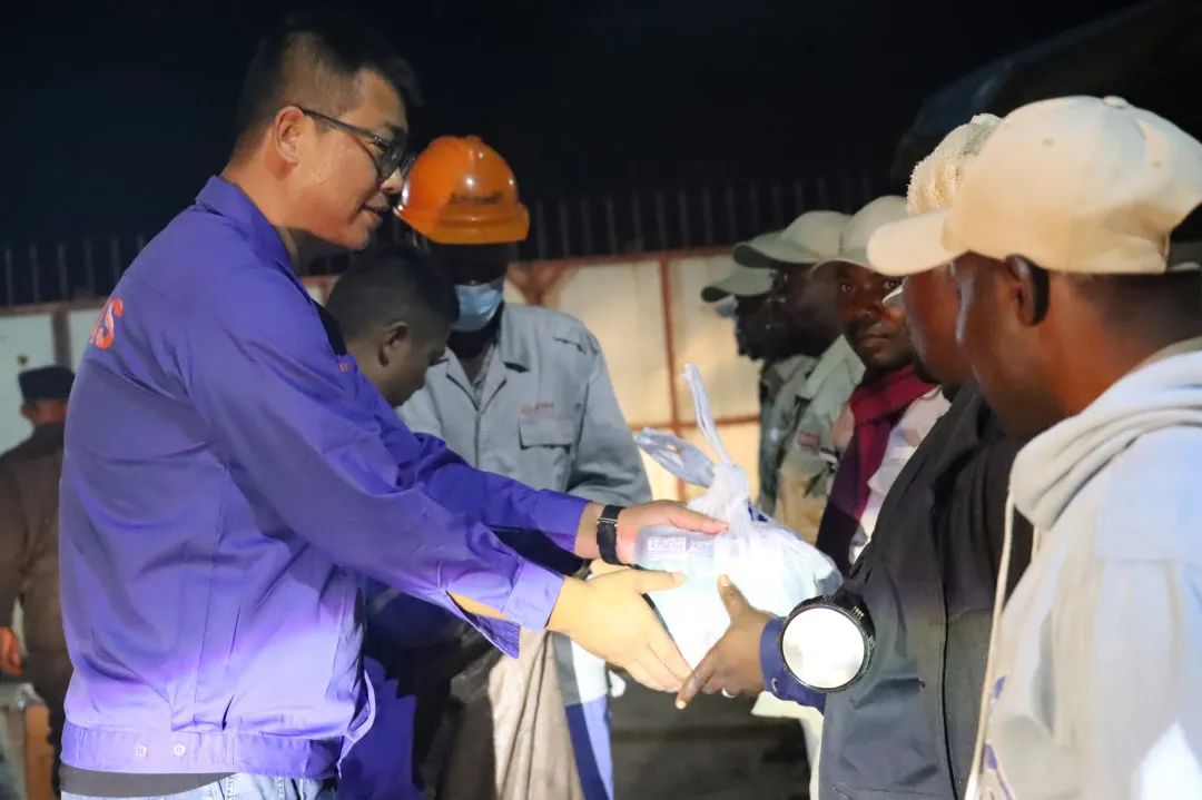 非洲資源產(chǎn)業(yè)集團(tuán)領(lǐng)導(dǎo)一行,帶著公司滿滿的關(guān)懷,奔赴各個值班崗位。每到一處,領(lǐng)導(dǎo)們都與員工親切握手,將承載著美好祝福的紅包和物資送到他們手中,讓堅守在異國他鄉(xiāng)的員工們感受到家一般的溫暖。