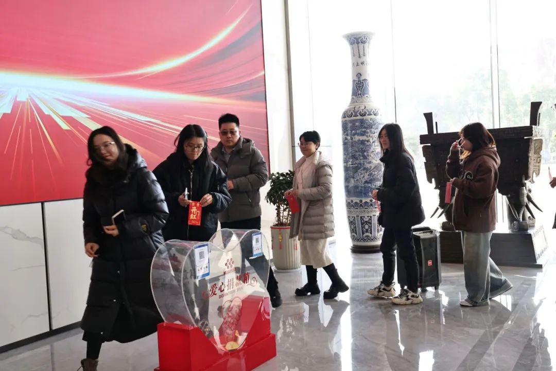 2025蛇年新氣象,公司總部愛心募捐活動在華友研發(fā)大樓一樓大廳舉行,早上八點剛過,來自各部門的干部員工在大廳就已排起隊伍。