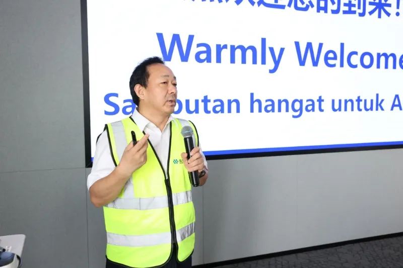 孫立會(huì)對(duì)遠(yuǎn)道而來的研修班貴賓表達(dá)了熱烈的歡迎與期待。他講到,印尼是華友踐行“根在中華,友遍天下”的重要伙伴國(guó),在走進(jìn)印尼的七年來,華友始終堅(jiān)持并融合印尼“全球海洋支點(diǎn)”“工業(yè)下游化”戰(zhàn)略和中國(guó)“一帶一路”倡議,將自身的產(chǎn)業(yè)、技術(shù)、資本優(yōu)勢(shì)與印尼的資源、區(qū)位優(yōu)勢(shì)相結(jié)合,助力全球新能源上下游產(chǎn)業(yè)伙伴在印尼共同發(fā)展。同時(shí),華友高度重視ESG建設(shè),在保障安全生產(chǎn)的同時(shí),聚焦生物多樣性、員工權(quán)益保護(hù)與社區(qū)發(fā)展,贏得了印尼政府和當(dāng)?shù)厣鐣?huì)的高度關(guān)注和大力支持。希望以此參訪為契機(jī),成為深化華友與印尼合作的新起點(diǎn)。