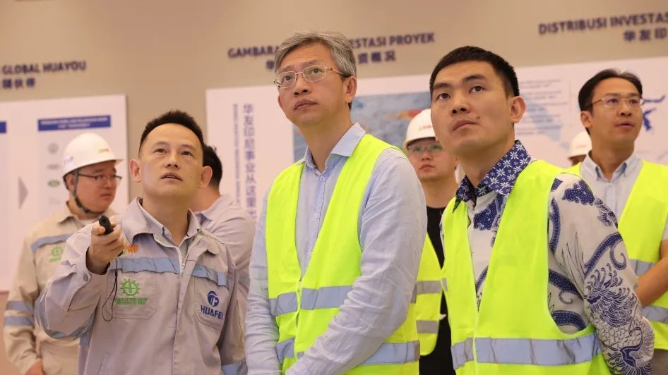 在緯達貝工業(yè)園,王大使對華飛項目進行實地調(diào)研。華友印尼區(qū)域管理中心負責(zé)人詳細介紹了華友緯達貝鋰電材料一體化綠色制造基地的情況。王大使在了解了當(dāng)前全球最大紅土鎳礦高壓酸浸項目——華飛HPAL的工藝技術(shù)后,對華飛在智能化、環(huán)?;矫嫠〉玫某尚Ыo予高度肯定。
