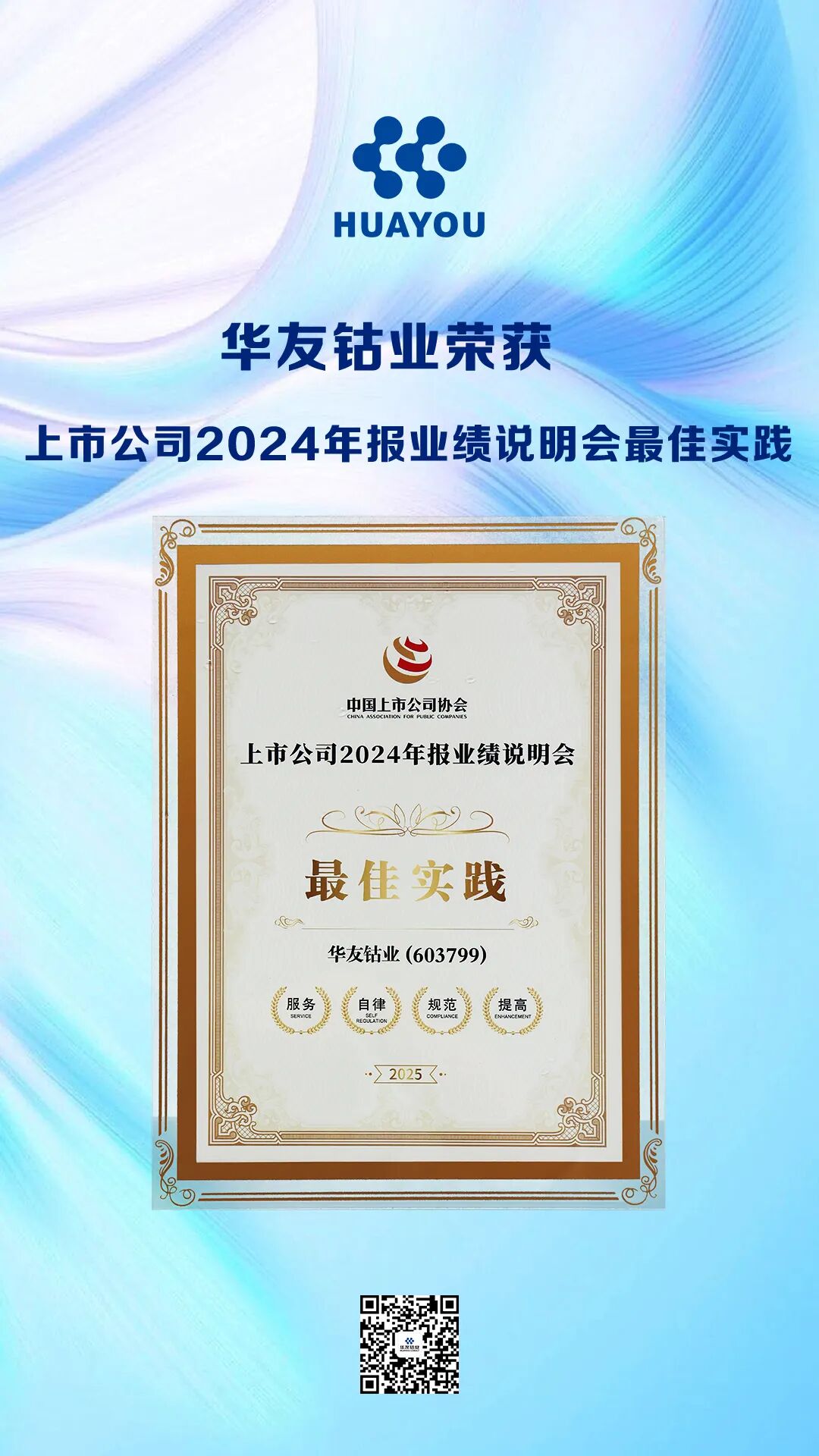 中國上市公司協(xié)會發(fā)布“2024年報業(yè)績說明會最佳實踐”榜單,公司精心組織、創(chuàng)新呈現(xiàn)的2024年度業(yè)績說明會,再次榮獲“最佳實踐”案例。此次說明會通過網(wǎng)絡(luò)直播向境內(nèi)外投資者開放,不僅以詳實的數(shù)據(jù)深度解讀了公司的戰(zhàn)略布局、經(jīng)營成果與行業(yè)洞察,更通過互動性極強的溝通形式,精準、主動地回應(yīng)了市場關(guān)切,展現(xiàn)了管理層對公司未來的堅定信心與清晰規(guī)劃。該榮譽標志著公司在投資者關(guān)系管理、信息透明化及價值傳遞方面已達到行業(yè)領(lǐng)先水平,贏得了監(jiān)管機構(gòu)與市場投資者的雙重認可。