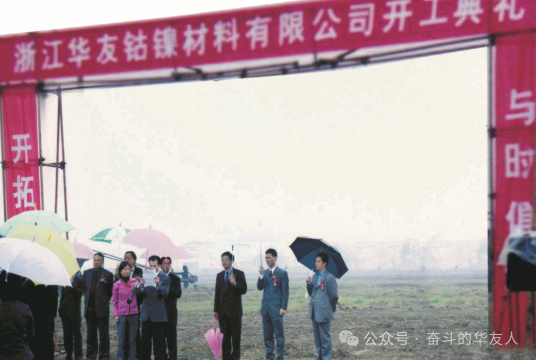 2002年,冬月的清晨,華友人擎舉著“開拓進(jìn)取 與時(shí)俱進(jìn)”的旗幟,腳踏泥濘,從鄉(xiāng)村走進(jìn)城市,開啟新征程。
